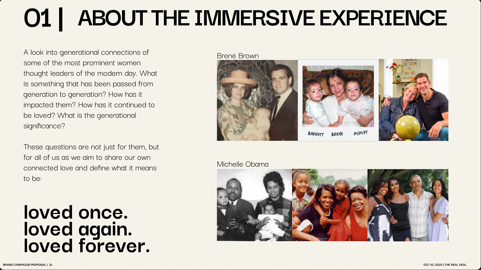 Initial concept outline + immersive video gallery real world applications
